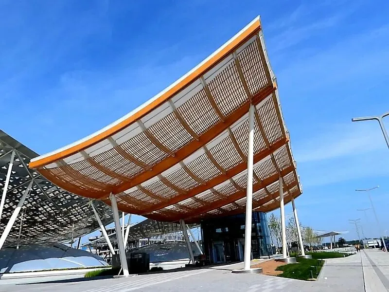“京帆”不仅具有美观性,还具备实用性,拥有先进的光热作用。当站在“京帆”下方时,虽然阳光强烈,但不会感到暴晒,同时透下的光线恰到好处。