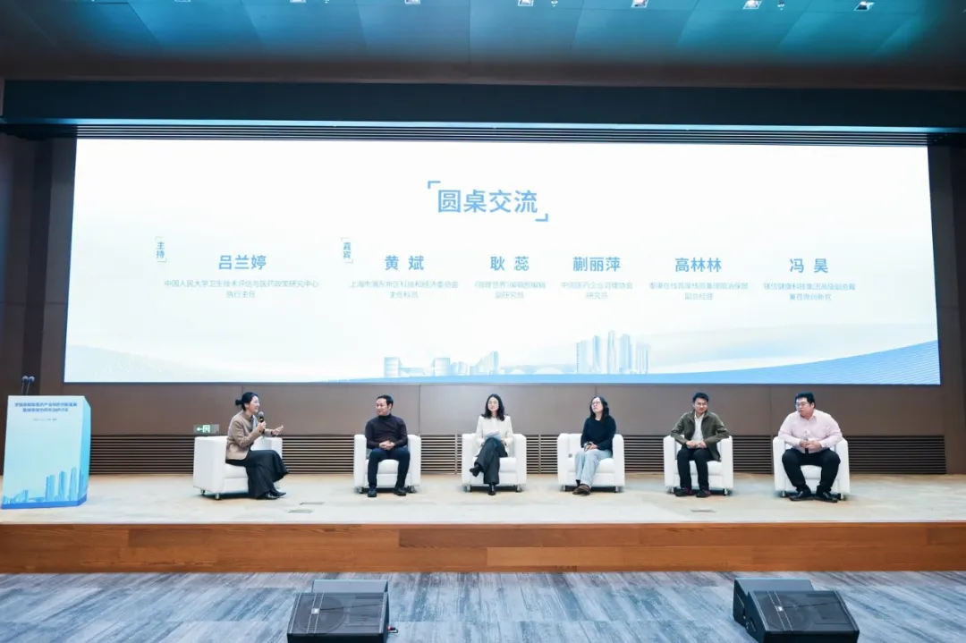圆桌交流环节,上海市浦东新区科技和经济委员会主任科员黄斌,《管理世界》编辑部编辑、副研究员耿蕊,中国医药企业管理协会研究员蒯丽萍,泰康在线首席核赔兼理赔消保部副总经理高林林,镁信健康科技集团高级副总裁兼首席创新官冯昊,围绕“优化多元支付生态,探索医保商保协同共治路径”议题,聚焦基本医疗保险与商业健康保险协同共治的实现路径,探讨基本医保如何赋能商业健康保险、医保商保数据如何共享、如何提升公众保险意识、“双目录”机制如何落地、药品价格保密机制如何构建、商业健康保险如何更好发挥在精算风控以及健康管理等方面的专业能力等关键问题。